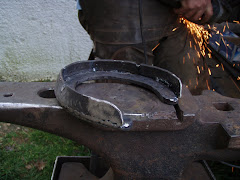 .PRUEBA DE LAS HERRADURAS Y CALENTADO PARA TRABAJARLAS Y ADAPTARLAS TOTALMENTE AL CASCO